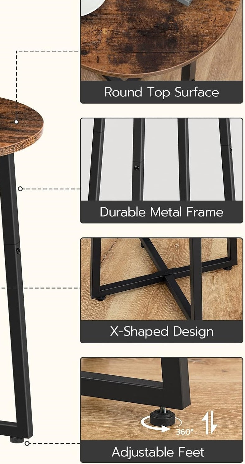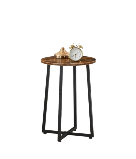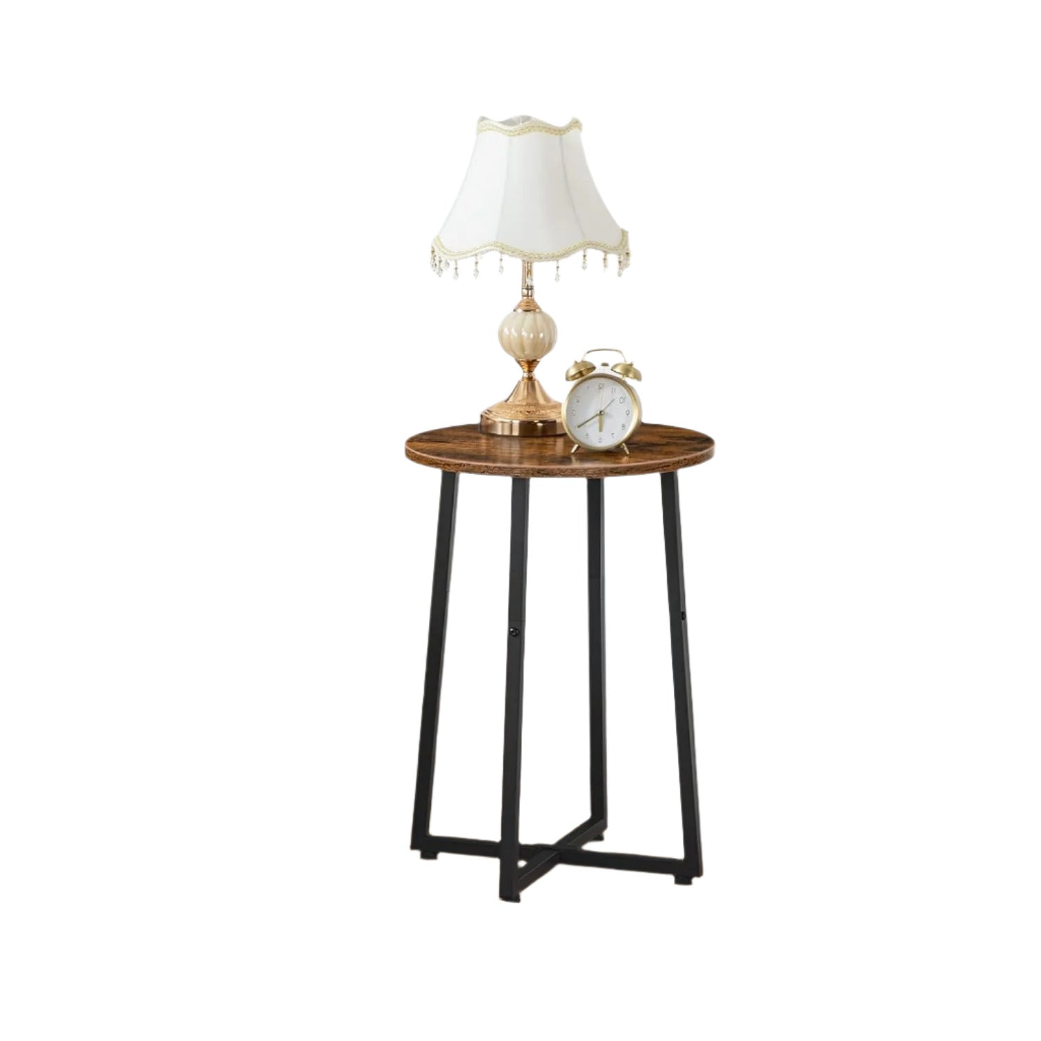 Round Side Table – Small Bedside Table, Industrial Coffee Table with Metal Frame,
