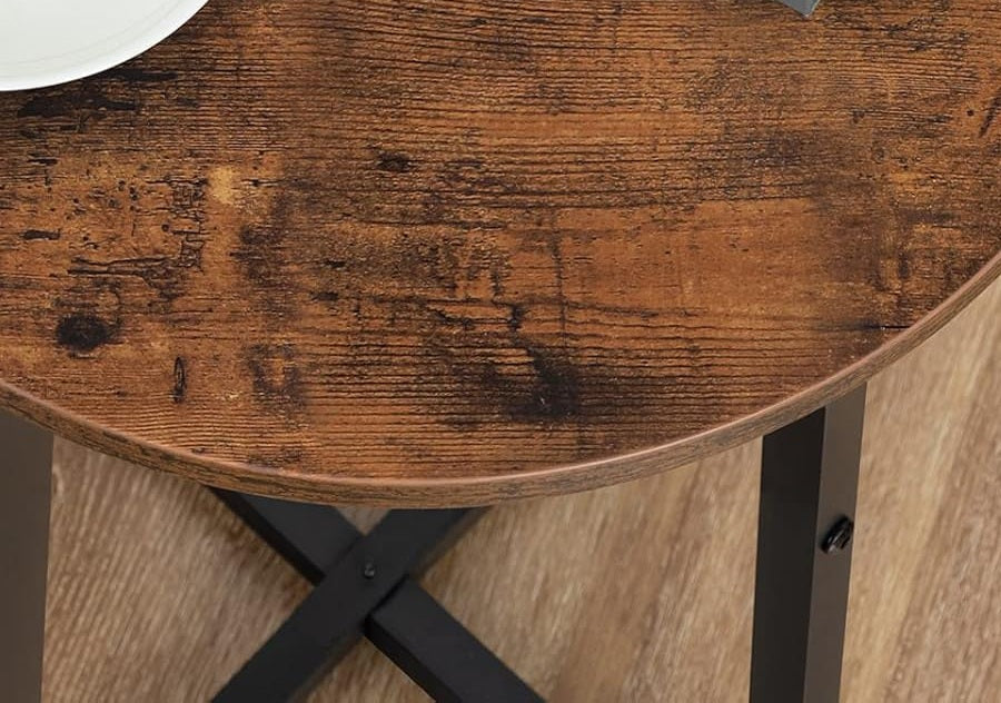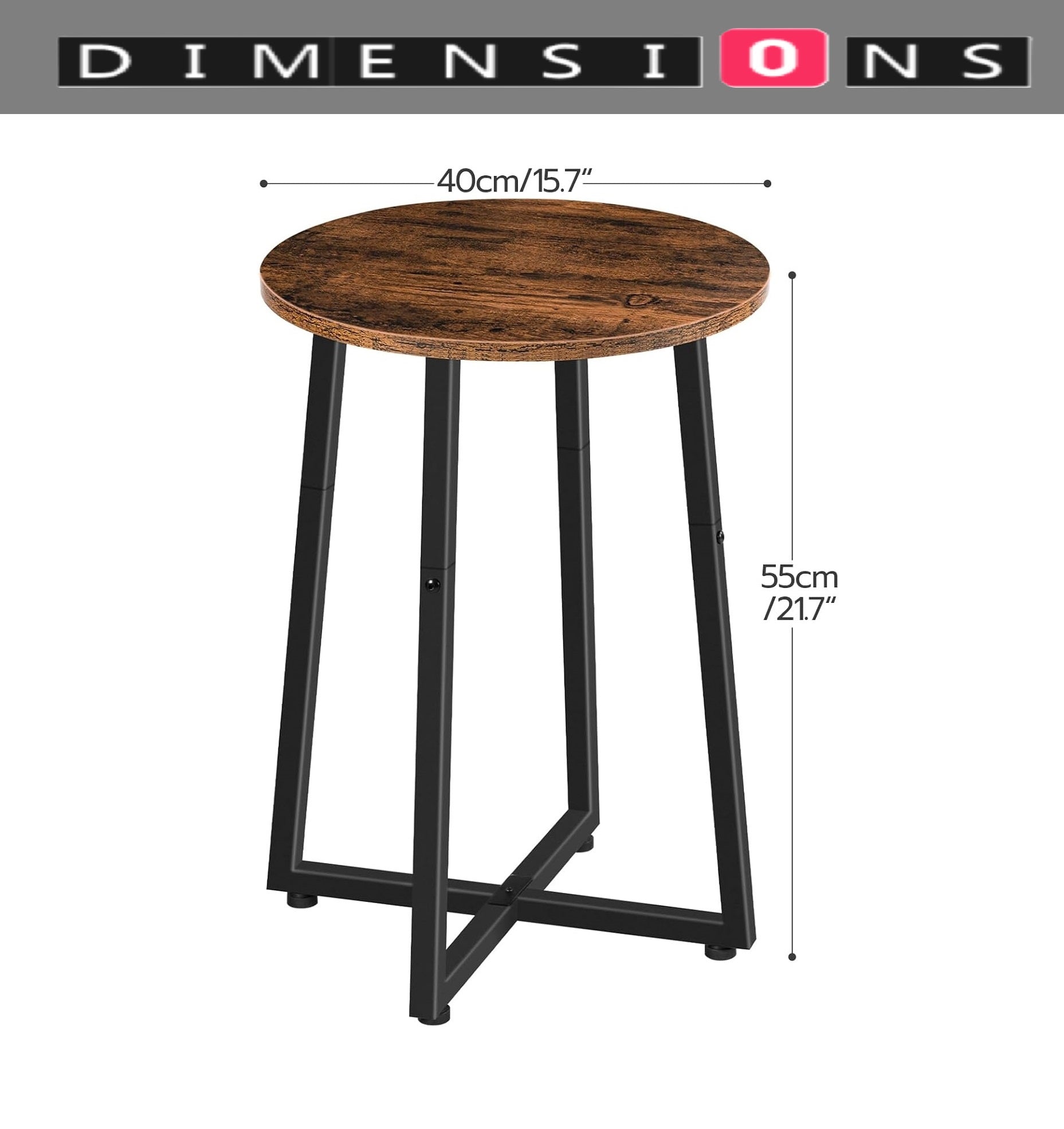 Add a touch of rustic industrial charm to your home with this Round Side Table, designed to fit perfectly into compact spaces. With a diameter of 40 cm and standing 55 cm tall, this small table is ideal as a bedside table, sofa end table, or hallway accent table.