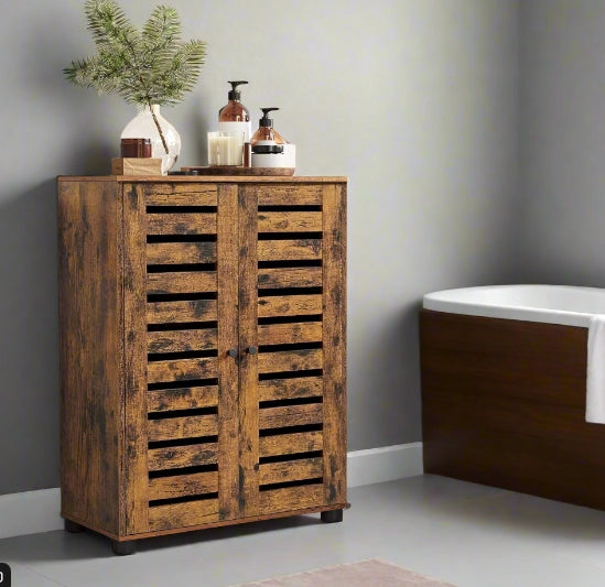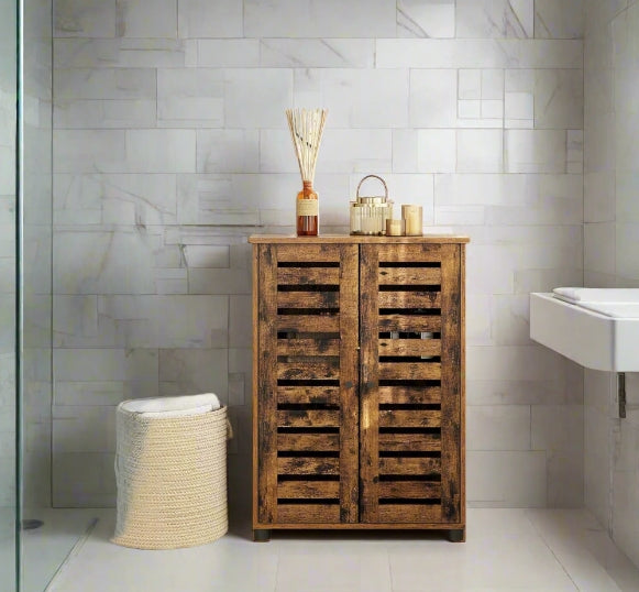 Rustic Bathroom Floor Cabinet – Storage Unit with Doors & Adjustable Shelf