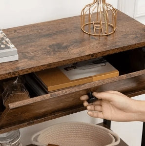 Bring warmth and function to your home with this Rustic Brown Console Table — the perfect blend of industrial charm and practical storage. Designed with a slim profile, it fits effortlessly in hallways, behind sofas, or along empty walls, helping you create an inviting and tidy living space.