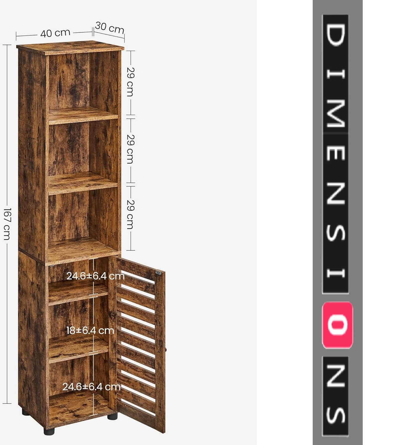 -Dimensions: 30 x 40 x 167 cm (D x W x H)