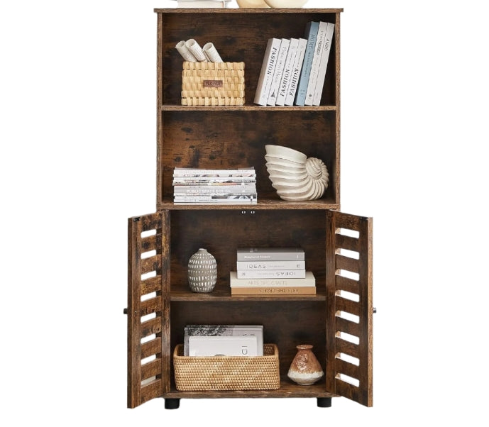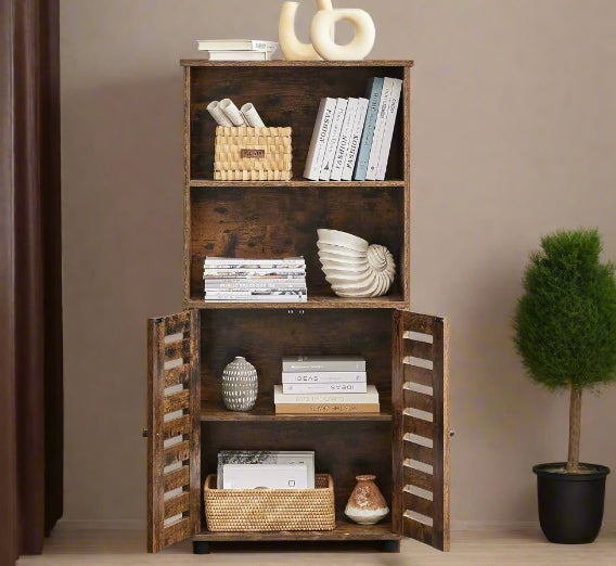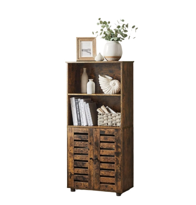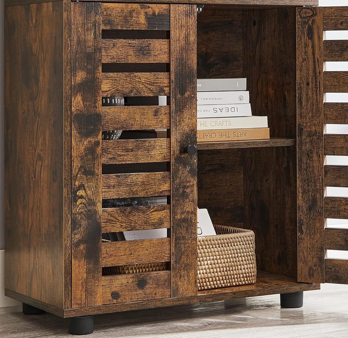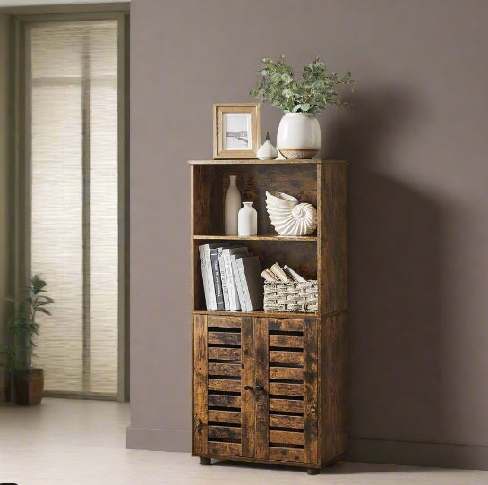 Rustic Brown Floor Standing Cabinet with Louvered Doors & Adjustable Shelf