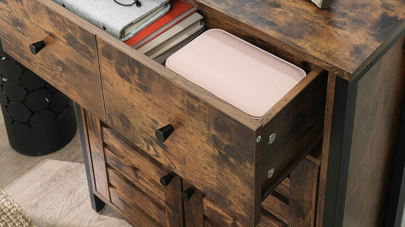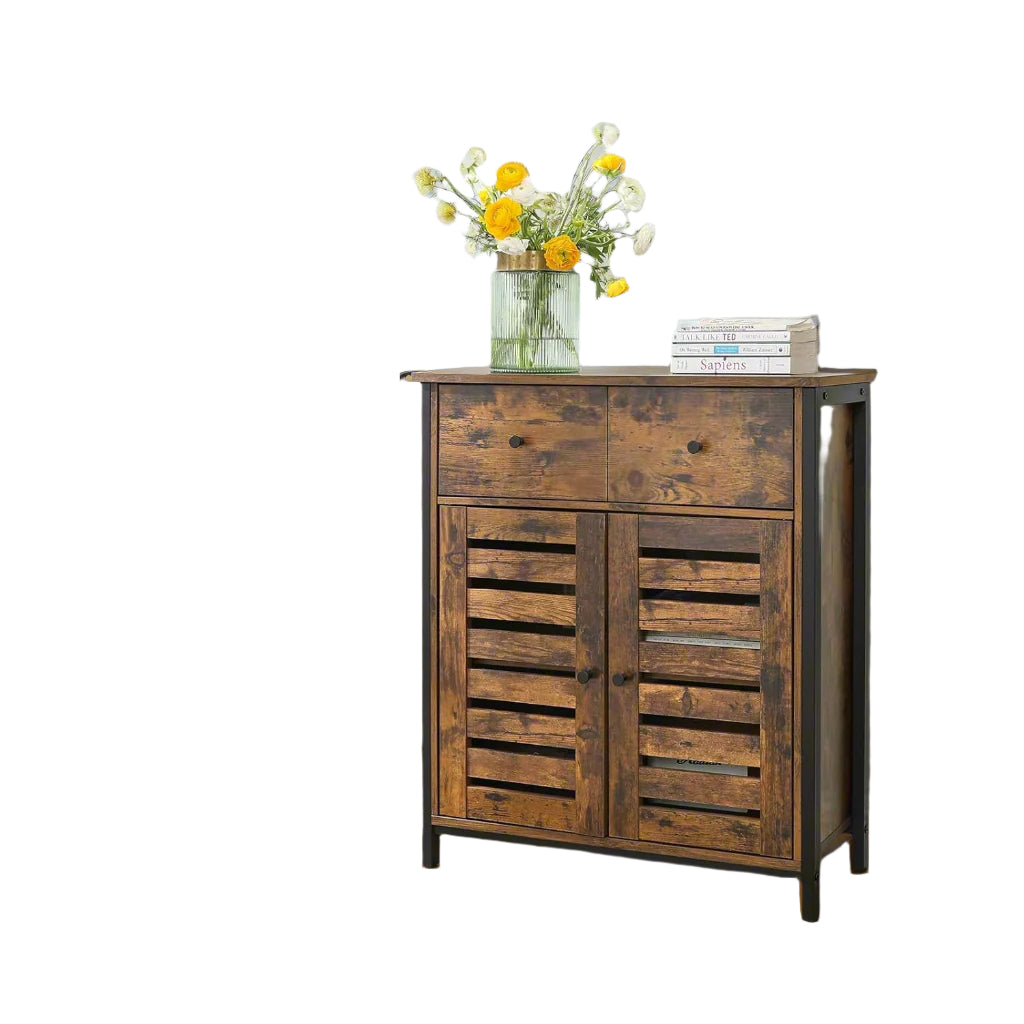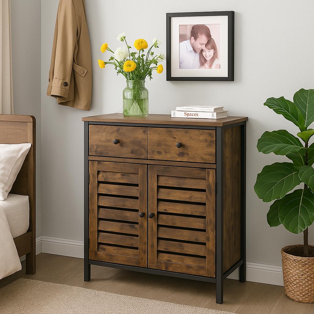 Rustic Floor Cabinet with Drawer & Louvered Doors – Freestanding Storage Unit for Hallway or Bedroom