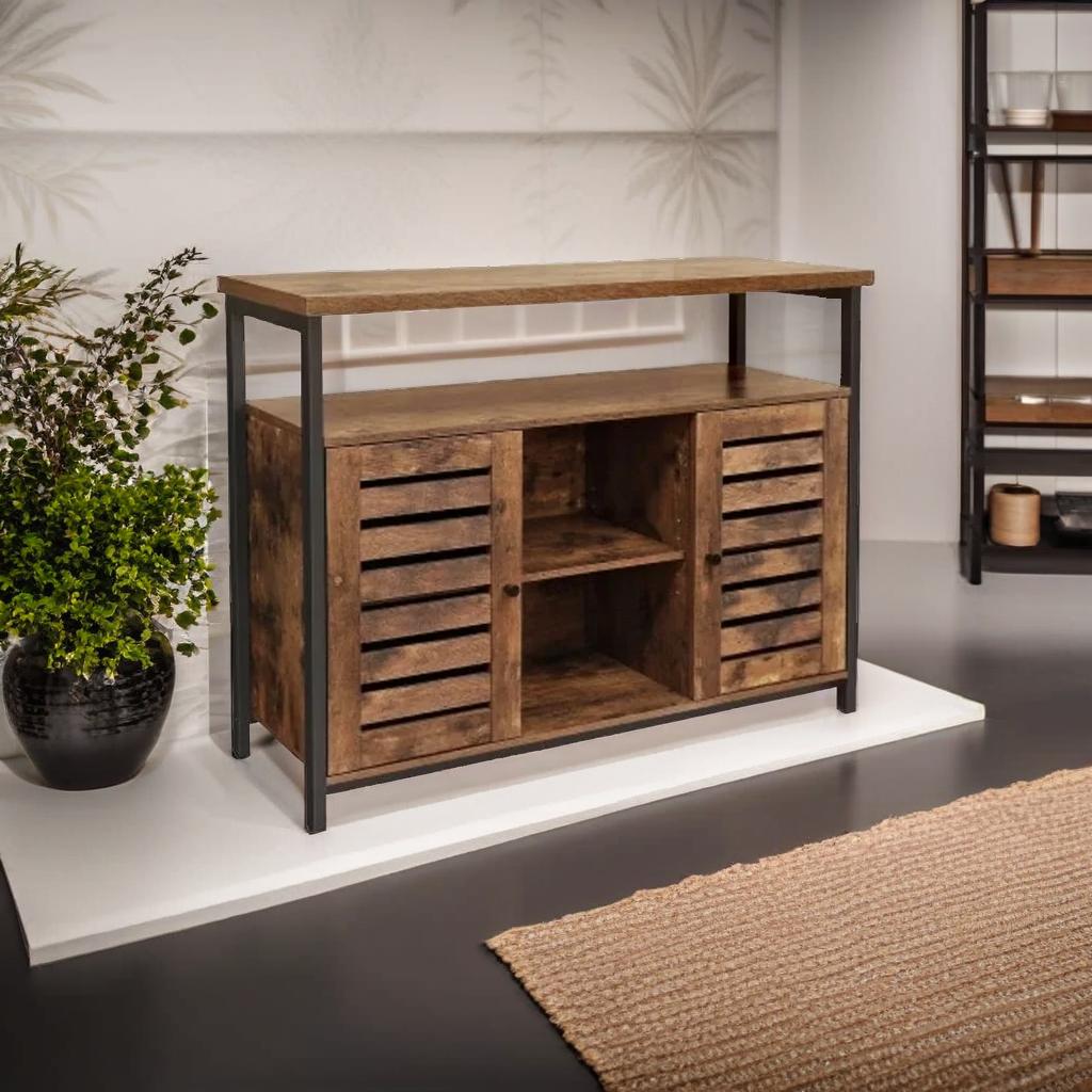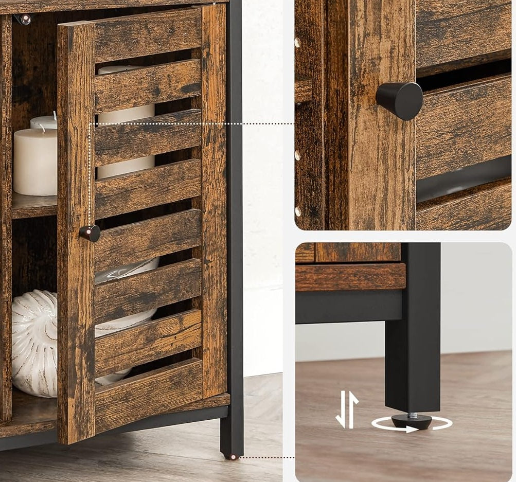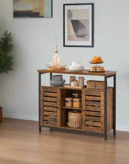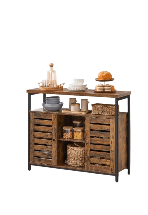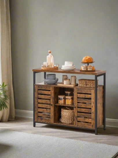Rustic Floor Standing Cabinet with Louvred Doors – Kitchen Storage Cupboard with Shelves, Industrial Style