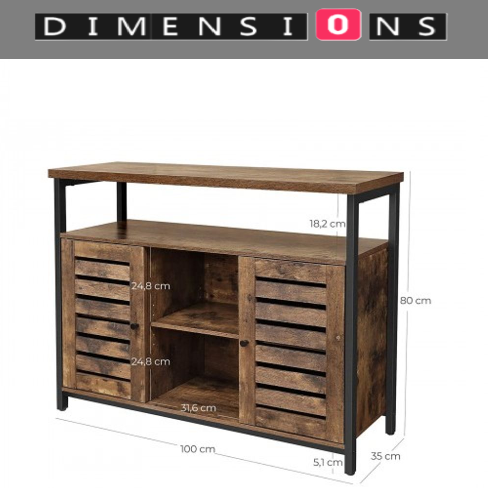 Whether placed in the kitchen, dining room, hallway, or bedroom, its 100 cm wide surface offers ample space for displaying decor, while the 2 cupboards with louvred doors and interior shelves neatly store dinnerware, linens, or household essentials. Adjustable shelves make it easy to customise for larger items.