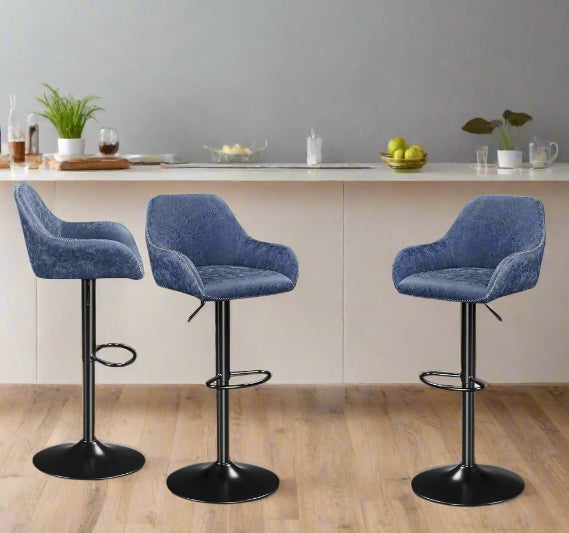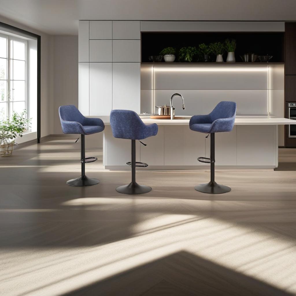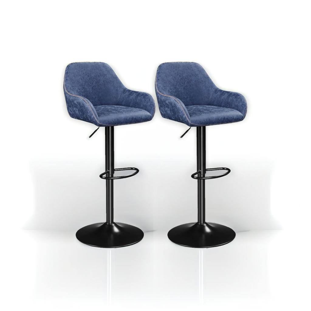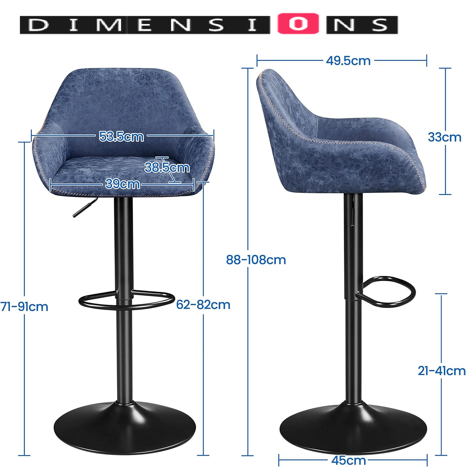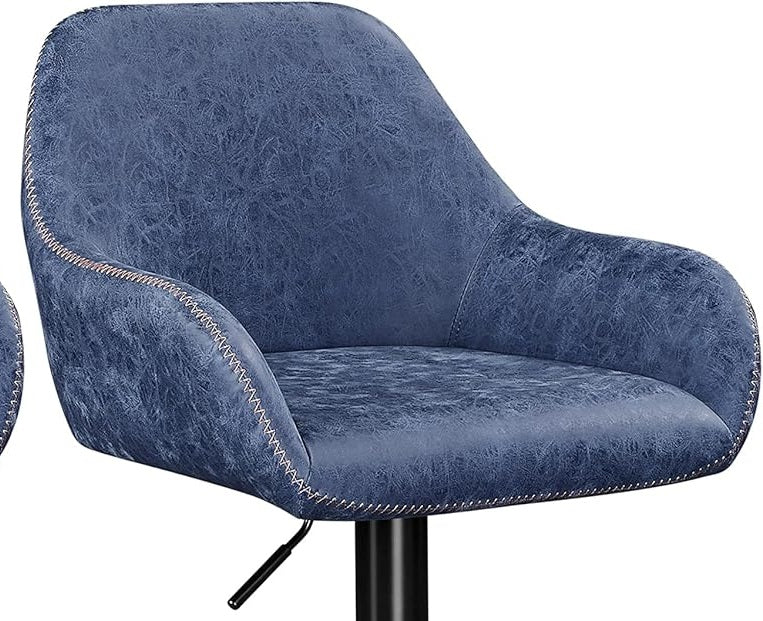 Upgrade your kitchen or home bar with this elegant set of 2 blue faux leather bar stools. Designed with comfort and function in mind, these stools feature a swivel seat, adjustable height, and supportive backrest and armrests for all-day comfort.