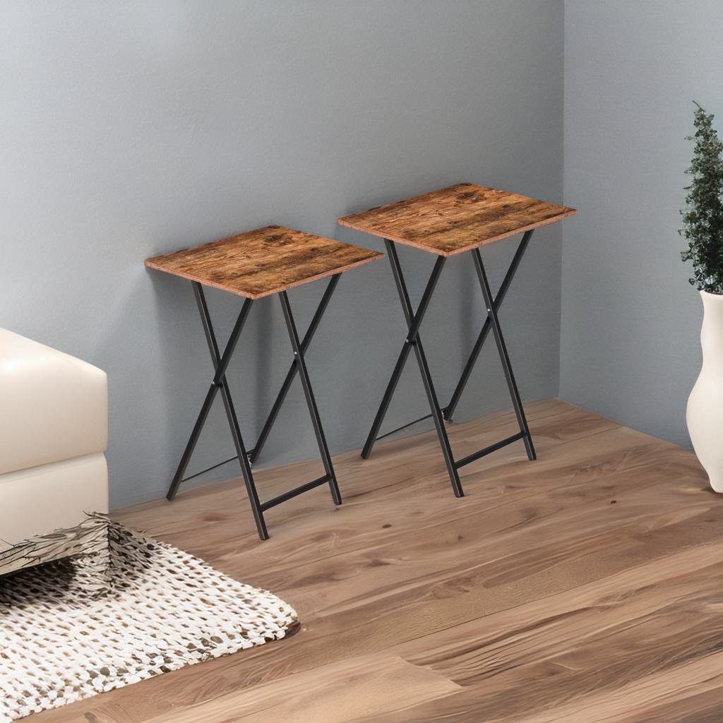 Add versatility and style to your living space with this Set of 2 Folding Side Tables, crafted in a charming industrial design. These compact and functional tables feature a durable metal frame and a rustic surface that brings a retro touch to any room.