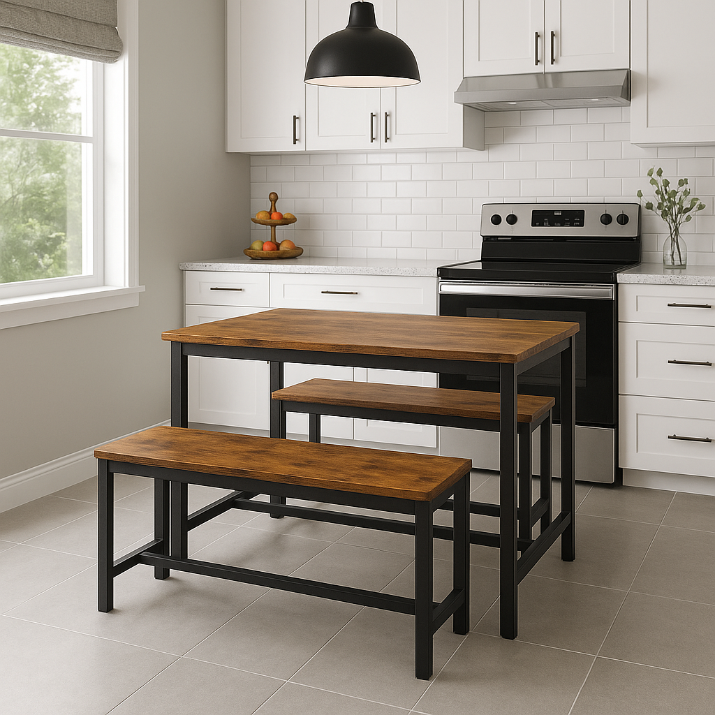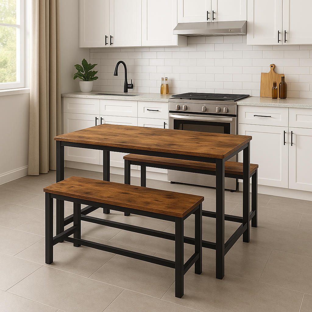 Built with engineered wood and supported by sturdy matte black metal frames these benches offer durability with a modern industrial edge. Rounded corners and crossbar reinforcements provide comfort and added stability. Whether you're hosting a dinner or needing extra seating these benches deliver charm and practicality.