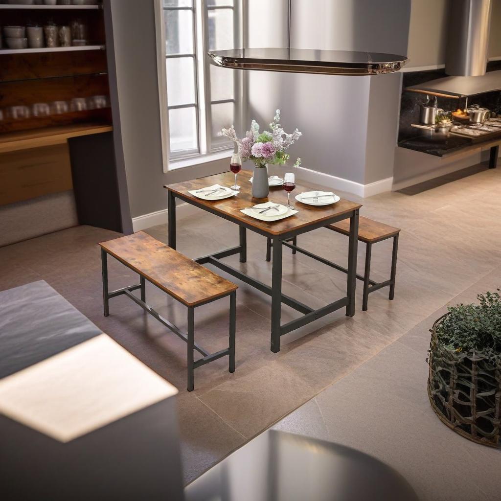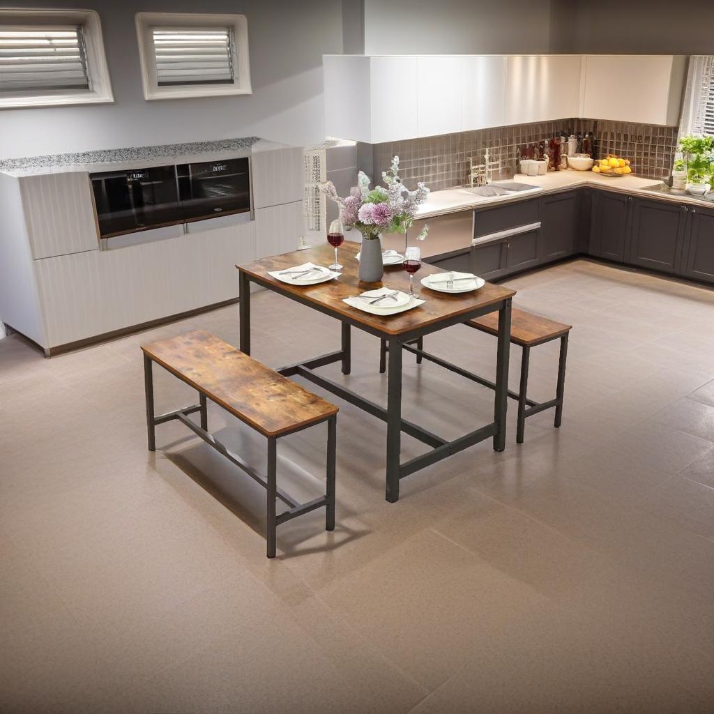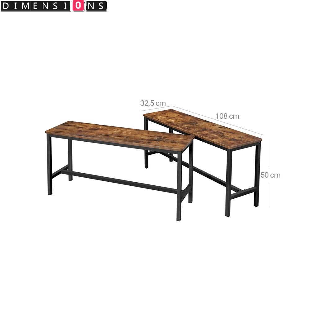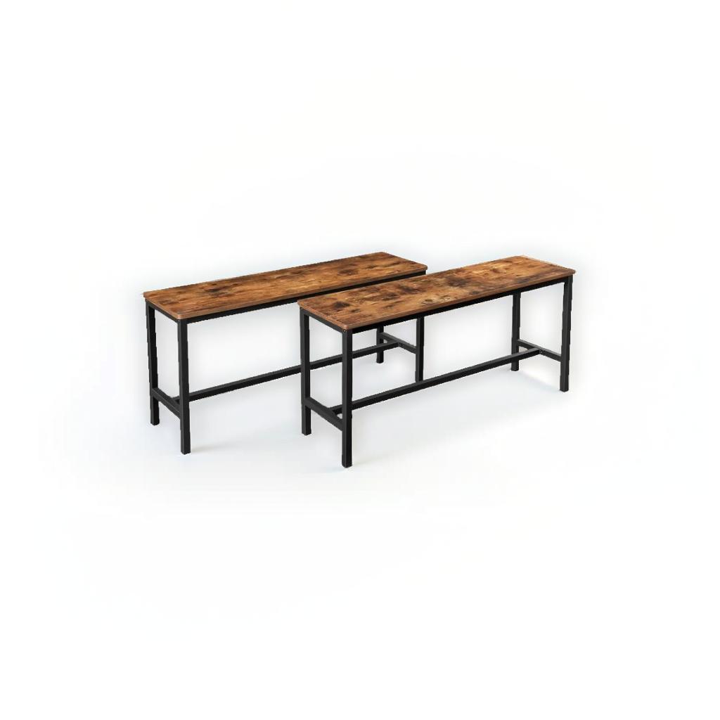 Upgrade your dining space with this set of 2 industrial benches crafted in rustic brown wood and black steel. Designed for both style and functionality, these benches are ideal for kitchens dining rooms or hallways. Their compact design allows them to slide neatly under most tables saving space when not in use.