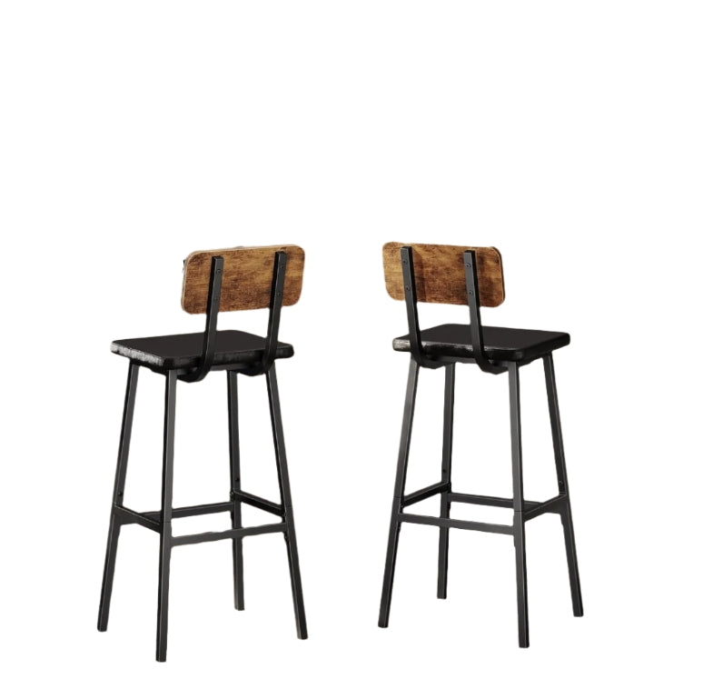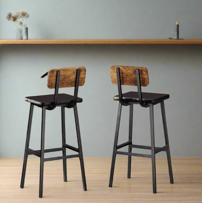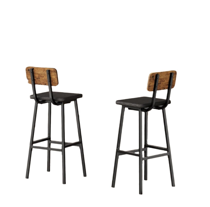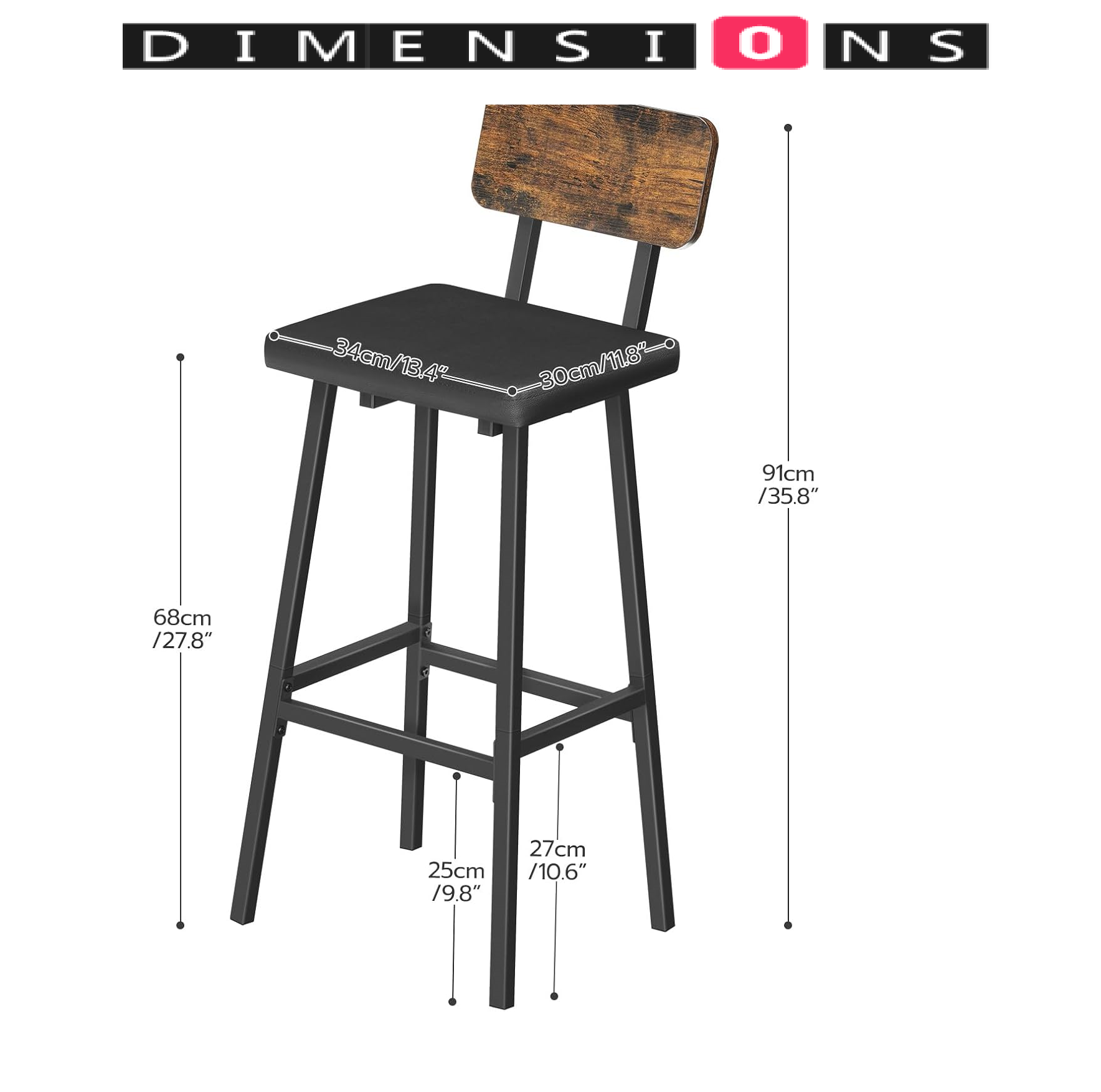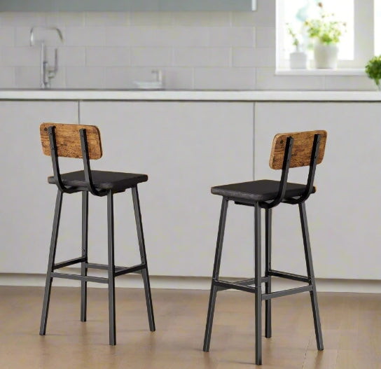 Set of 2 Industrial PU Upholstered Bar Stools – Breakfast Bar Chairs with Backrest