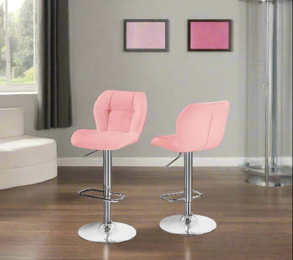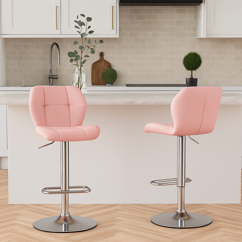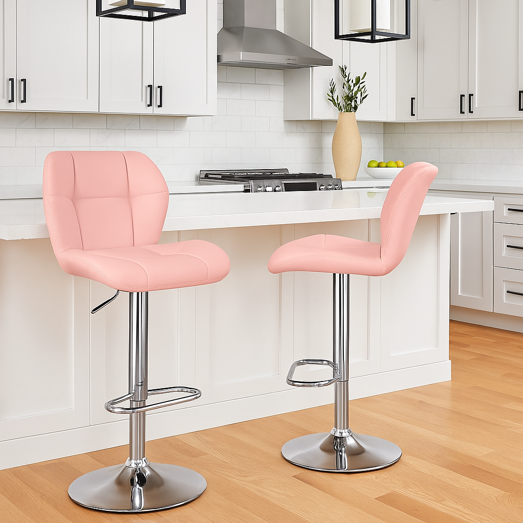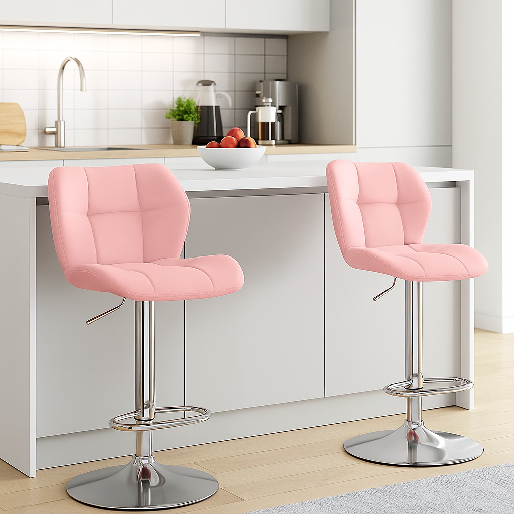 Add a bold splash of colour and comfort to your kitchen or dining space with this set of 2 pink PU leather bar stools. Featuring a stylish shell back design with square tufting, these stools combine eye-catching elegance with practical function.
