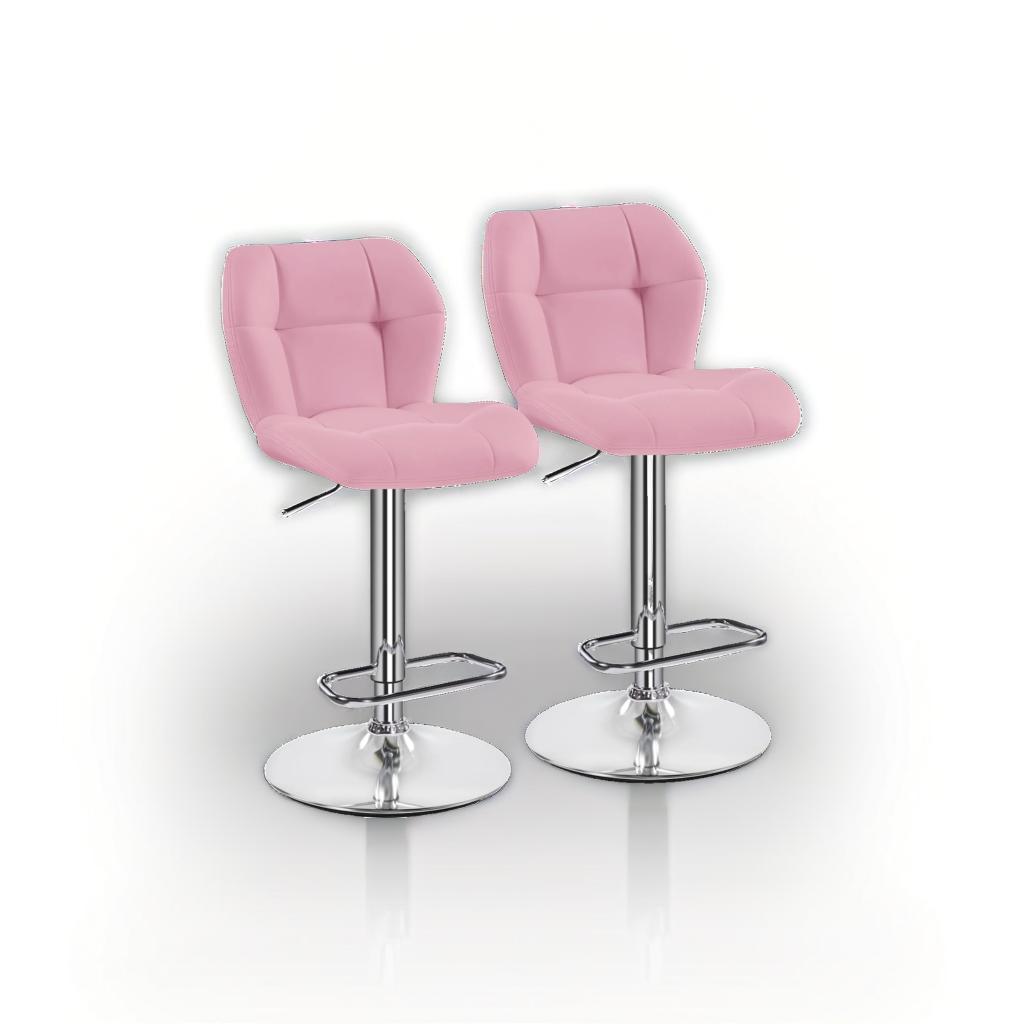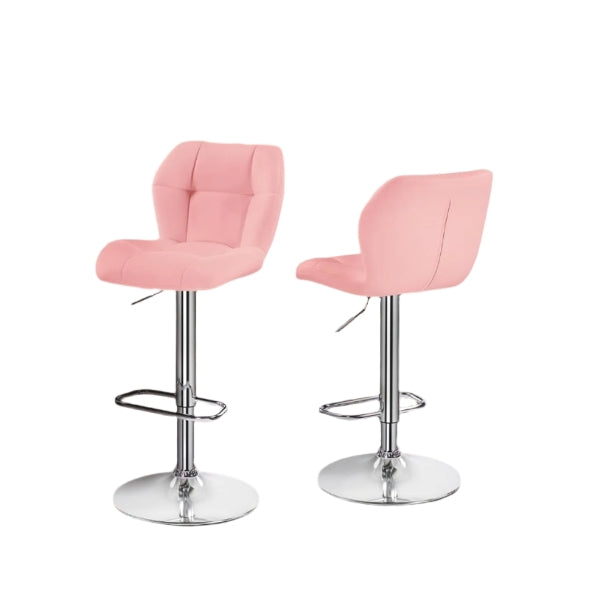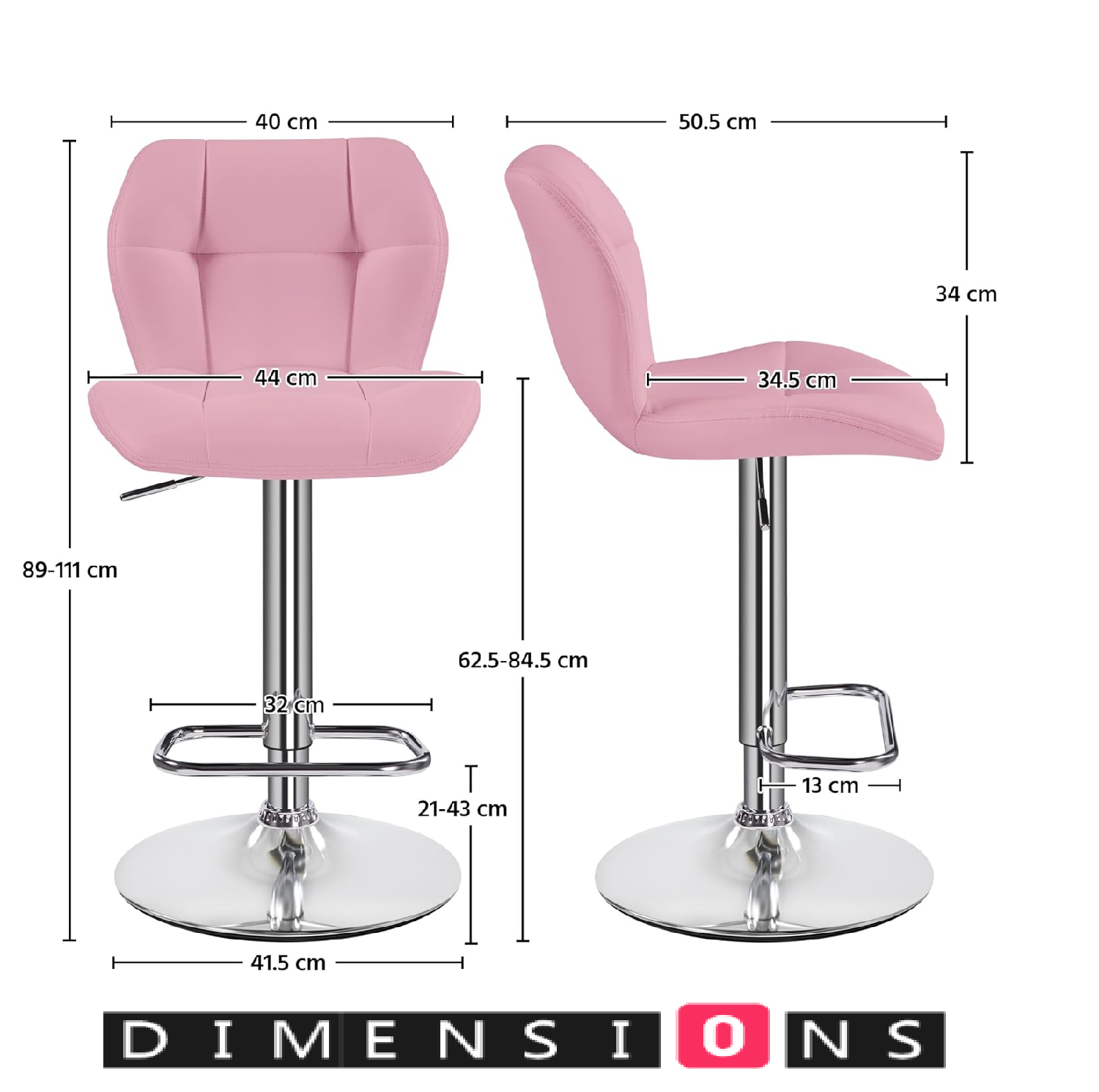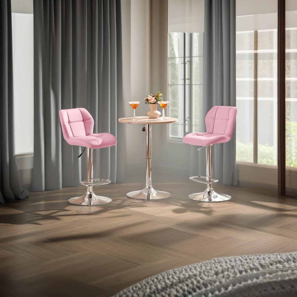 Set of 2 Pink PU Leather Bar Stools – Adjustable Swivel Counter Chairs with Backrest