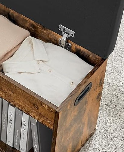 Keep your footwear organized with space for up to 6 pairs on the 2 shelves, and store ankle boots in the tall compartment. The seat flips up to reveal hidden storage for brushes, mittens, and other accessories, helping to declutter your entryway.