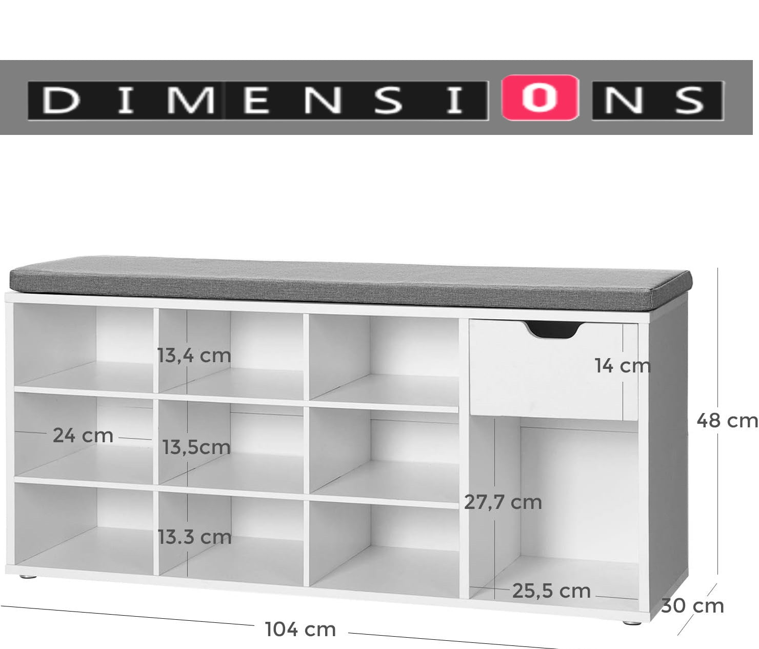 Measuring 30 x 104 x 48 cm, this spacious bench accommodates two people comfortably and is built with durable particleboard and MDF for long-lasting use. Its modern design adds a clean, contemporary look to any hallway, bedroom, or closet while helping you maintain a clutter-free space.