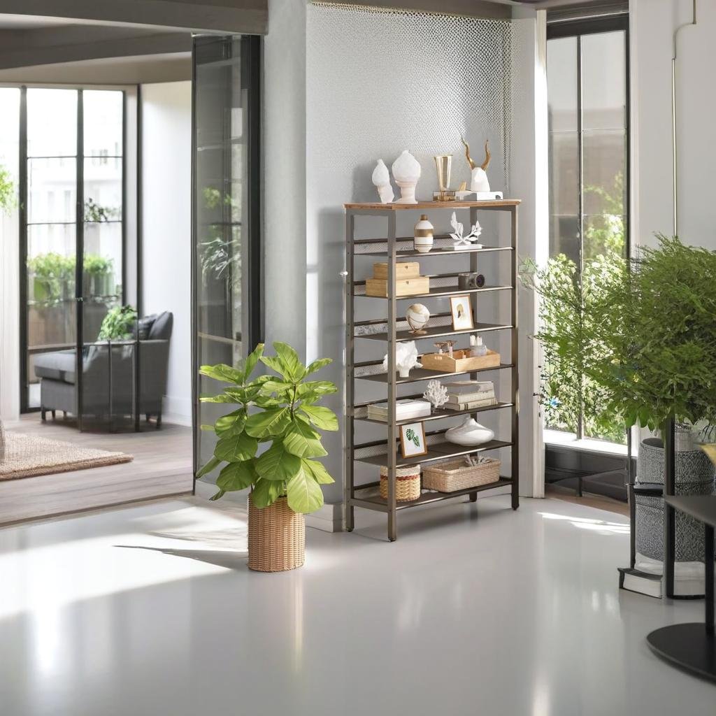 Constructed from high-quality particleboard and metal mesh, it provides robust support and durability even with heavier items. The shelves can be arranged flat or at an angle, making it easy to store everything from high heels to winter boots, and the rising lip on each shelf prevents shoes from sliding off. This organizer is ideal for tight spaces in entryways, living rooms, bedrooms, closets, dormitories, or apartments. It maximises vertical space while taking up minimal floor area.