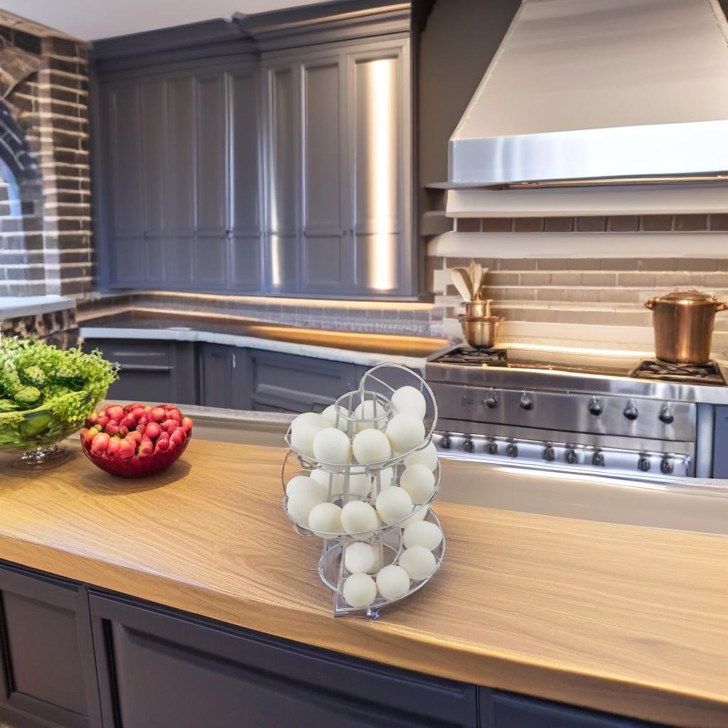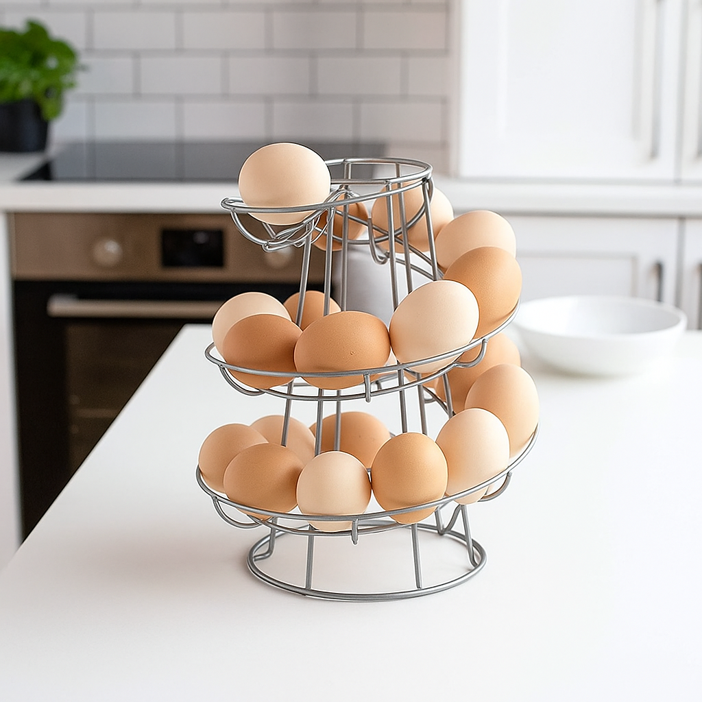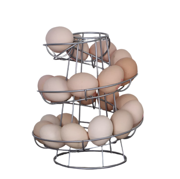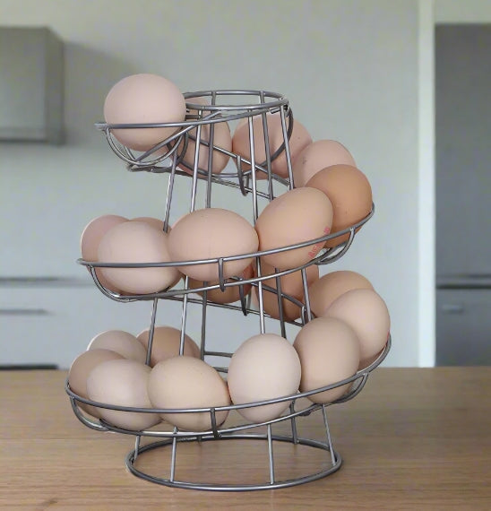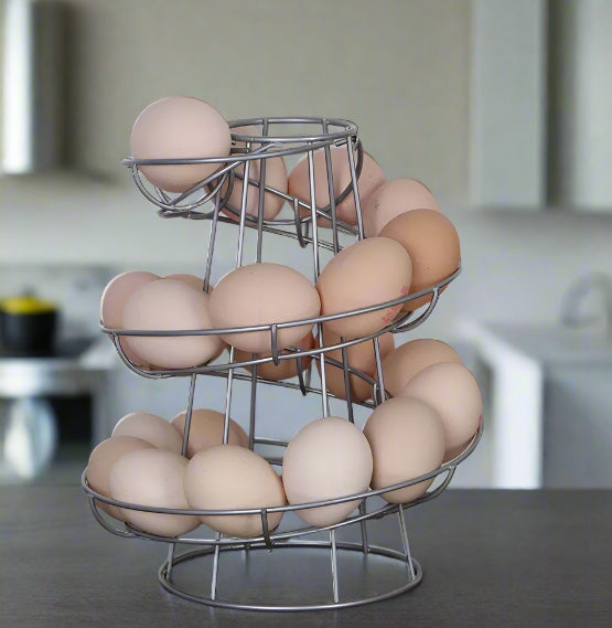Silver Spiral Egg Holder Rack Skelter Kitchen Stand Holds 12 to 18 Eggs Counter Display