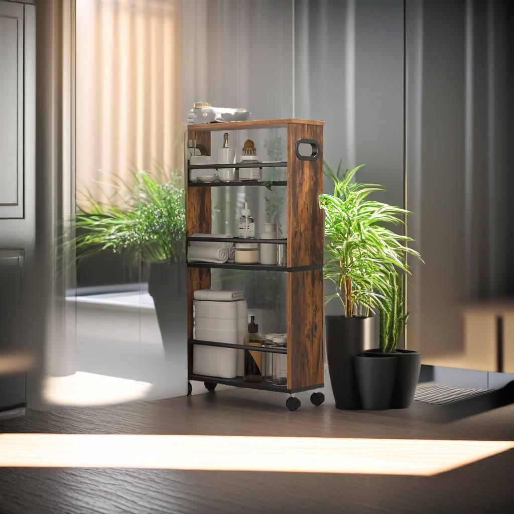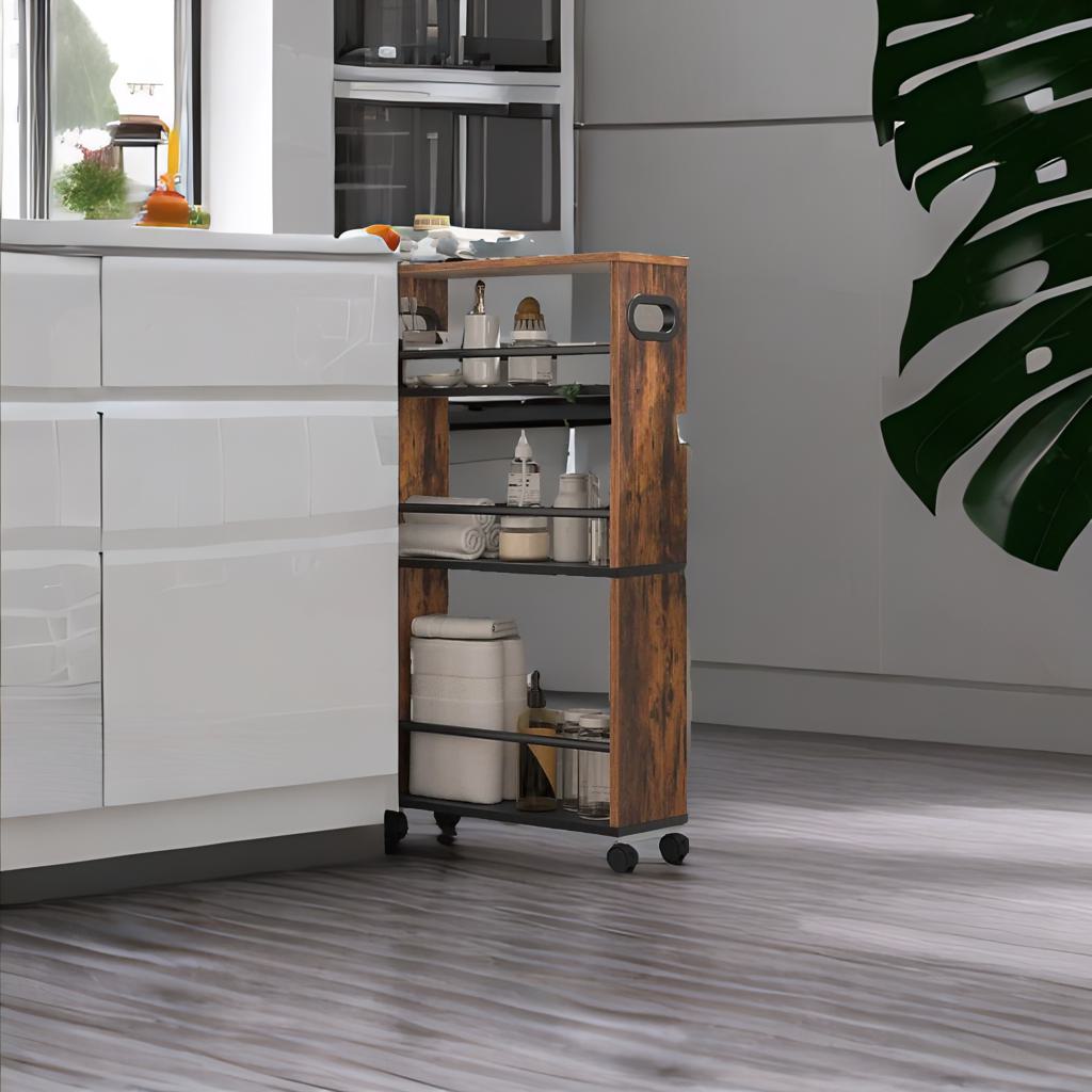 Slim 4-Tier Rolling Kitchen Trolley with Lockable Wheels – Narrow Utility Cart for Small Spaces