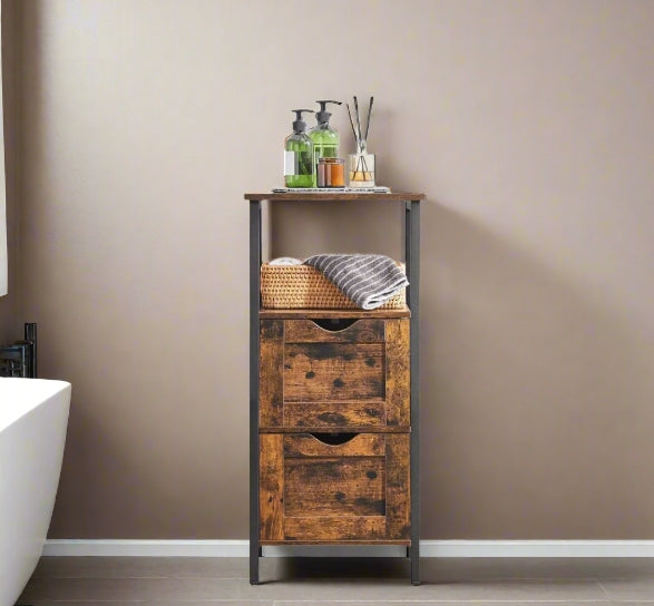 Maximise your bathroom storage in style with this rustic brown and black floor cabinet. Designed for compact spaces, this slim 80 x 37 x 30 cm storage unit blends industrial flair with smart functionality—perfect for modern bathrooms, bedrooms, or living areas.