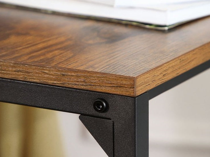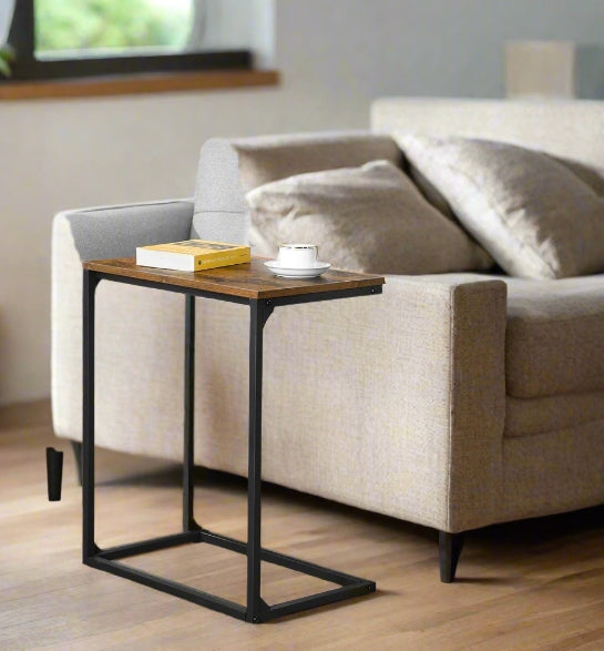 Small Laptop Side Table – Rustic Brown & Black Industrial Sofa or Bed Desk with Steel Frame
