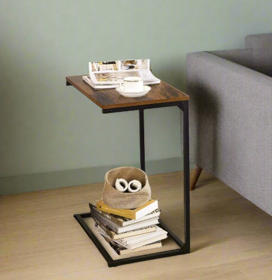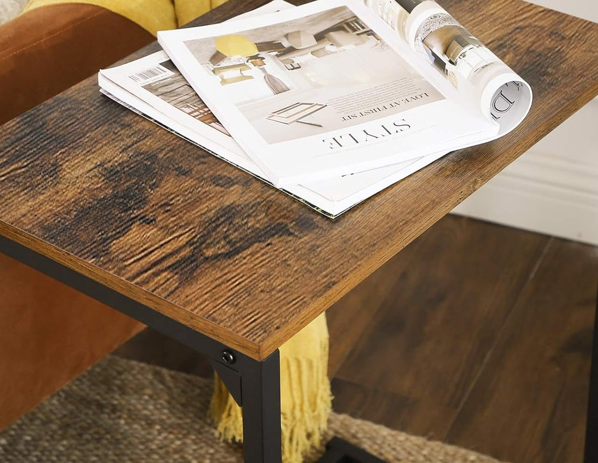 The industrial-style finish—a rustic brown wood surface paired with a matte black frame—adds warmth and modern flair to your bedroom or living room. Whether you're on a video call, responding to emails, or just enjoying breakfast in bed, this table keeps everything comfortably within reach.