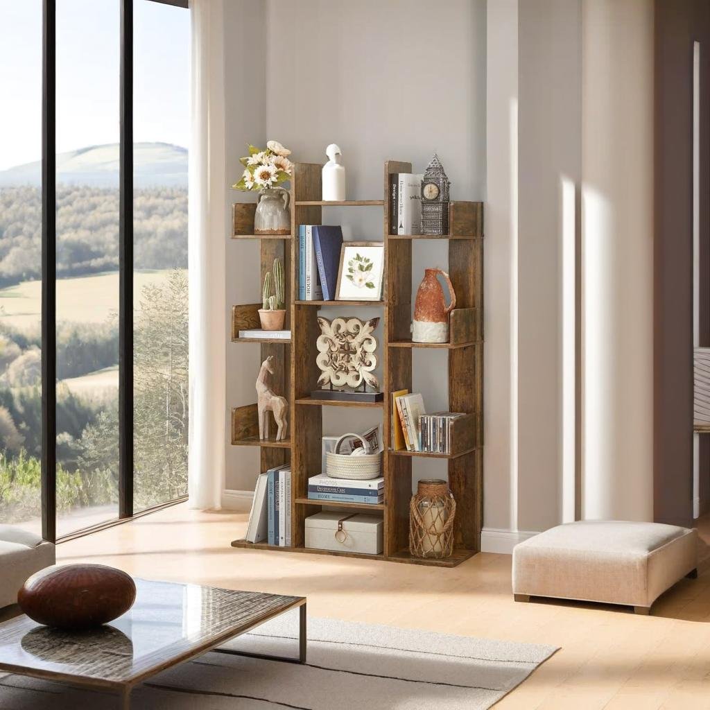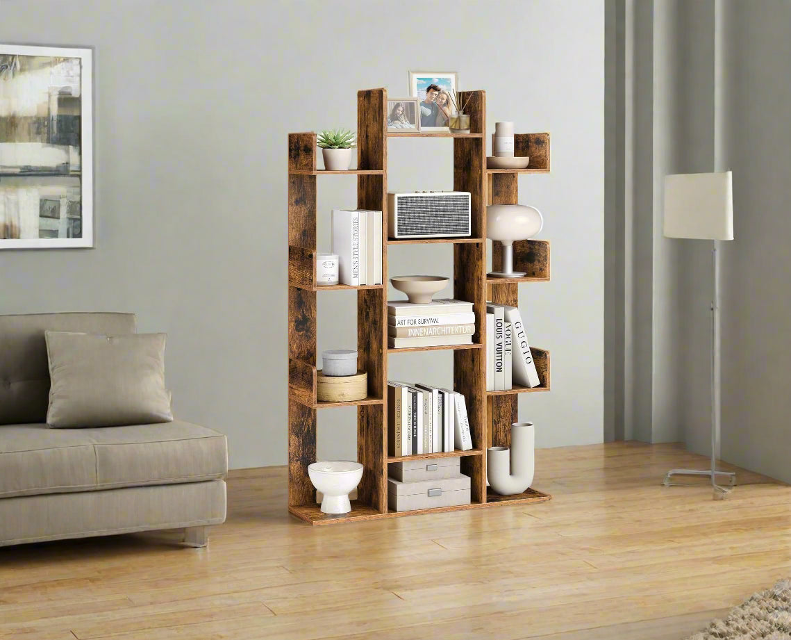 Transform this tree-shaped shelf into a stunning display by arranging your books and more in its 13 compartments. Perfect for books, CDs, magazines, decorations, potted plants, and other items!